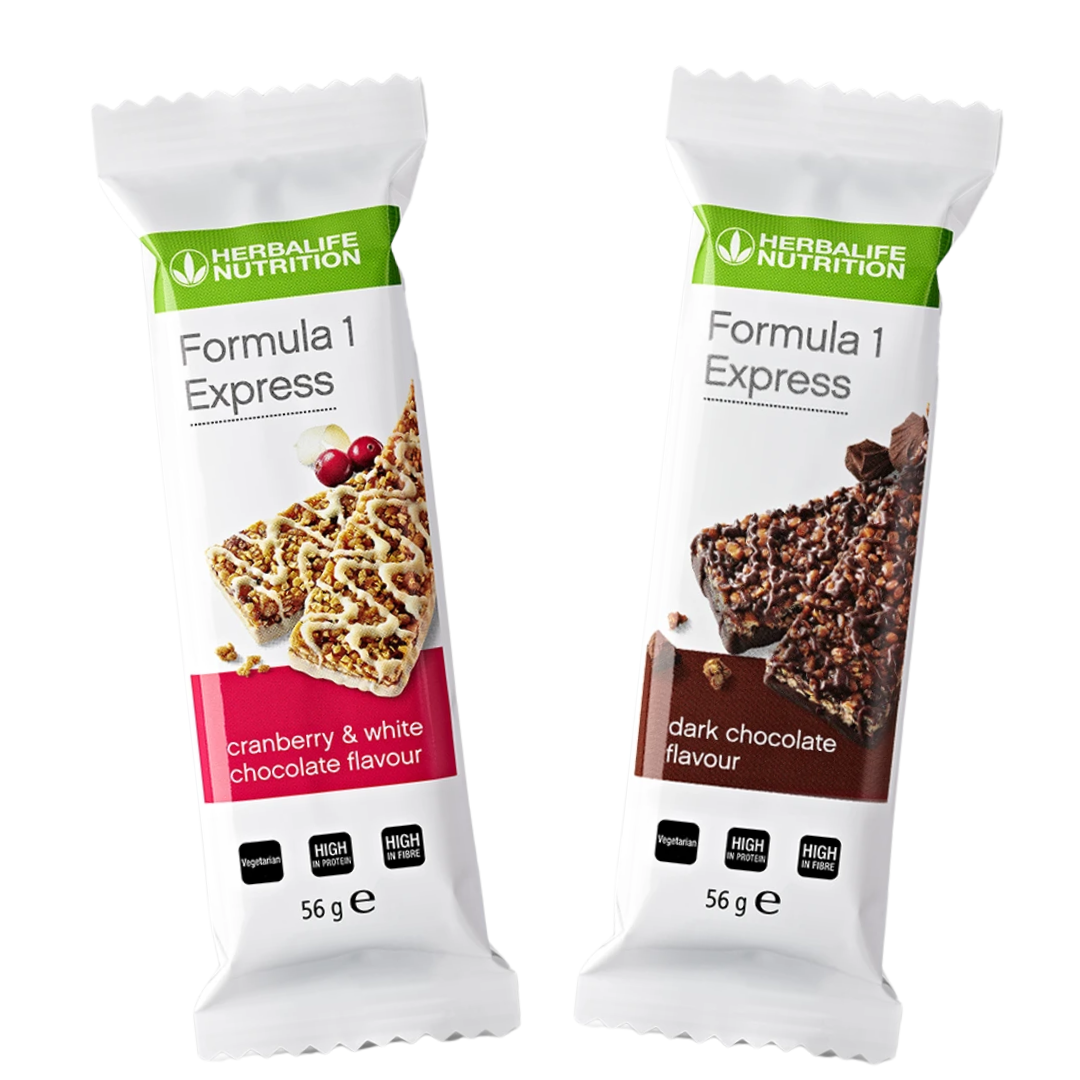 Batonul F1 Express HerbalifeMasă Sănătoasă are toate calitaţile nutriţionale ale unui shake sau ale unei mese sănătoase. Cu batonul Express Formula 1 esti linistit, pentru ca si atunci când manânci pe fuga poţi sa îi oferi organismului o masa hranitoare, cu aport caloric controlat. Acest baton inlocuieste o masa cand doresti sa slabesti.